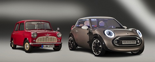 The image below depicts the original 1959 Austin MINI automobile next to the newest MINI concept, the Rocketman. It's a visual metaphor of how far Apple's minimalist Mac mini has come since its first incarnation in January 2005. It's gone from a PowerPC G4 to an Intel Core i5/i7 processor. It's progressed from a Radeon 9200 GPU with 32MB DDR memory to Radeon HD 6630M with 256MB of GDDR5 memory. Instead of an 80GB Ultra ATA HDD, you can get it with a 750GB SATA HDD and a 256GB SATA SSD. Yet it weighs less and is thinner than the 2005 model.